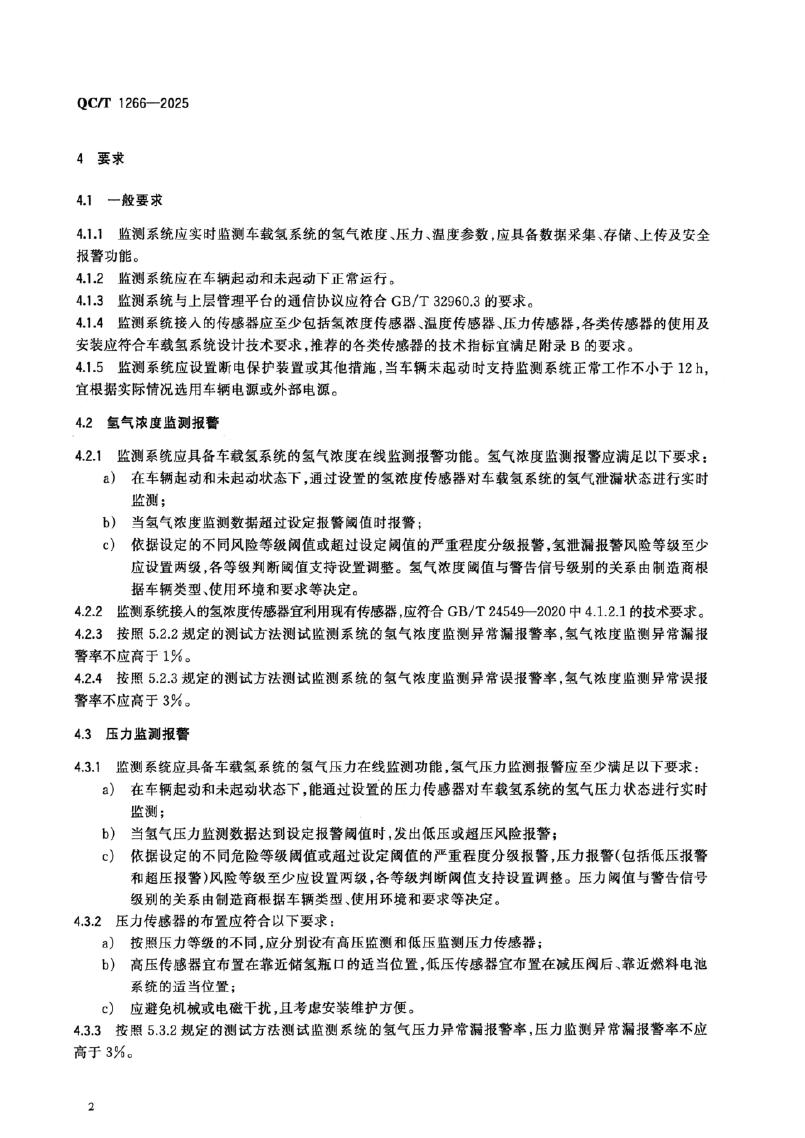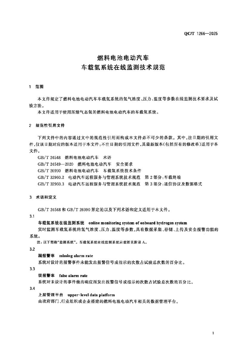QC/T 1266-2025 燃料电池电动汽车车载氢系统在线监测技术规范