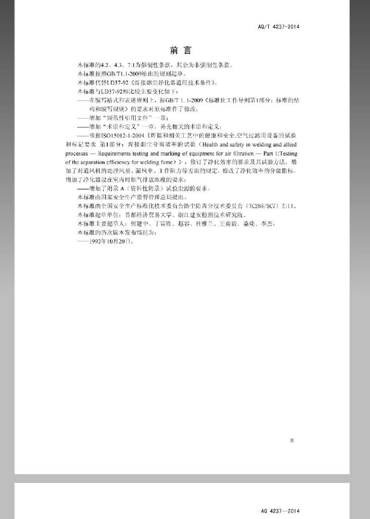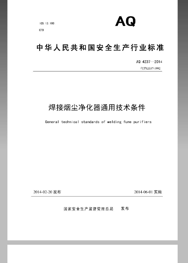 AQ 4237-2014 代替LD37-1992 焊接烟尘净化器通用技术条件