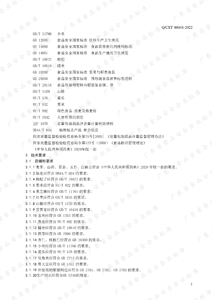 Q/CXT 0004S-2022 陈皮麦芽代餐粉(冲调谷物制品)