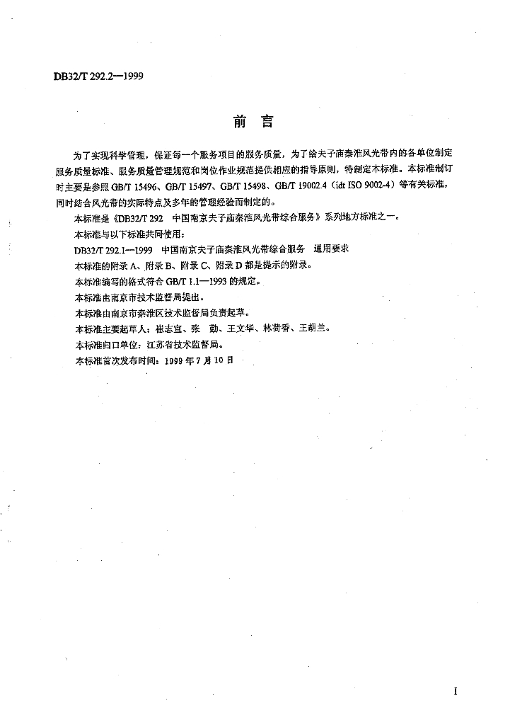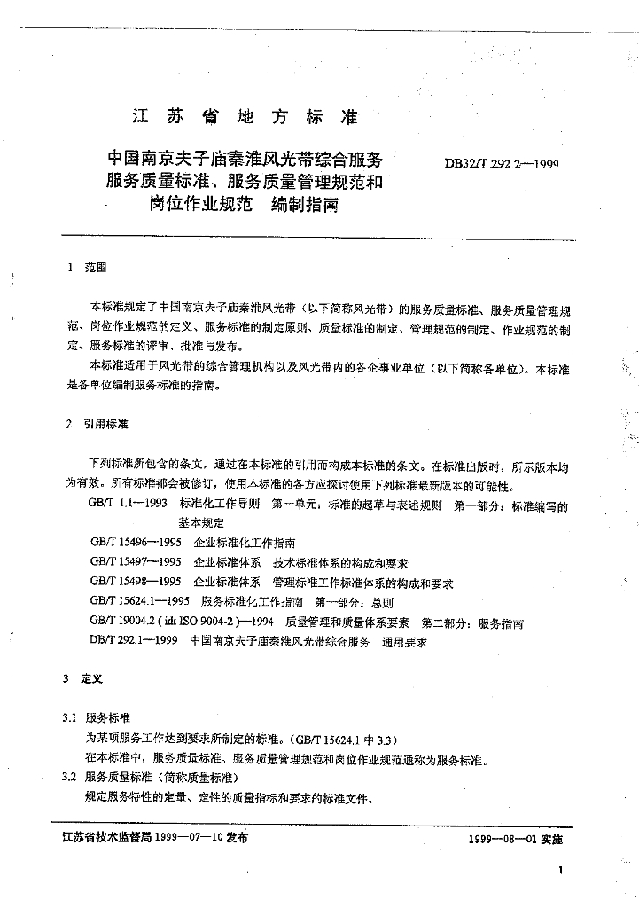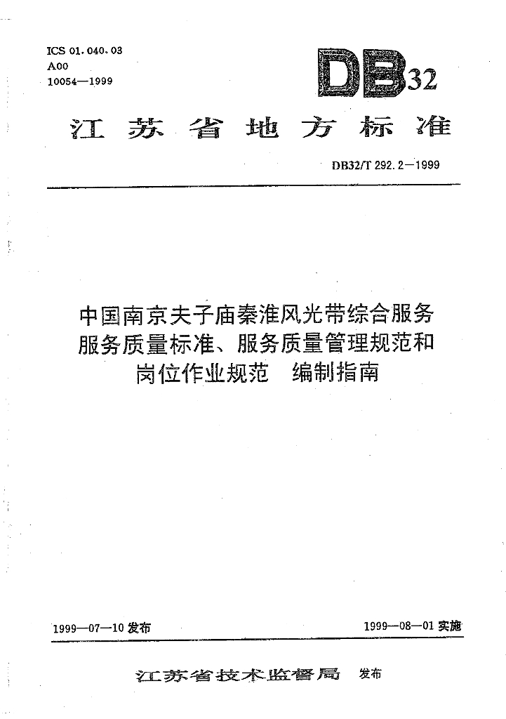 DB32/T 292.2-1999 中国南京夫子庙秦淮风光带综合服务 服务质量标准、服务质量管理规范和岗位作业规范 编制指南