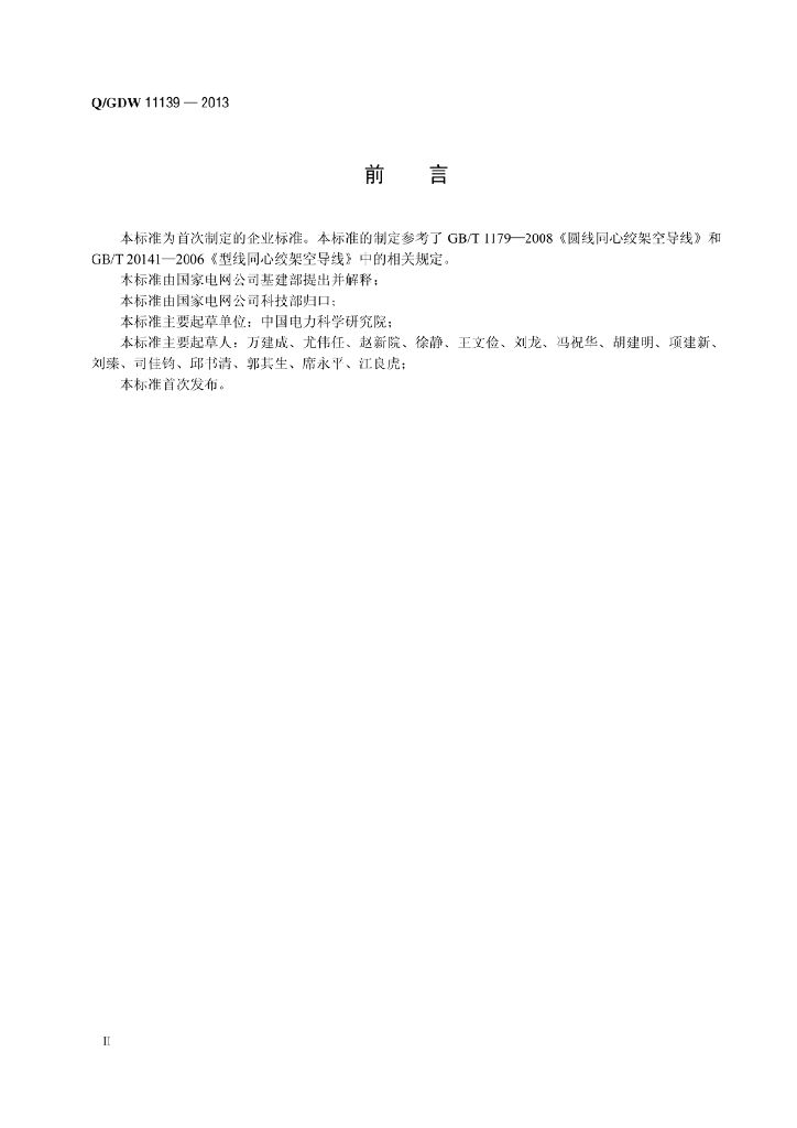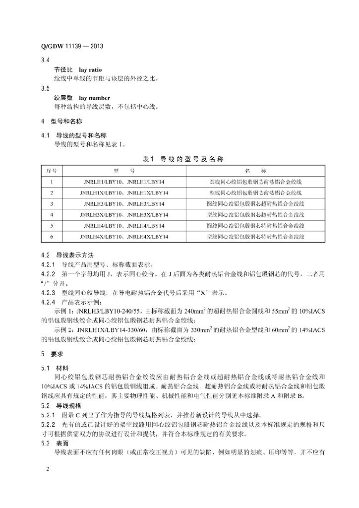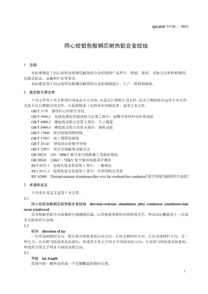 Q/GDW 11139-2013 同心绞铝包殷钢芯耐热铝合金绞线