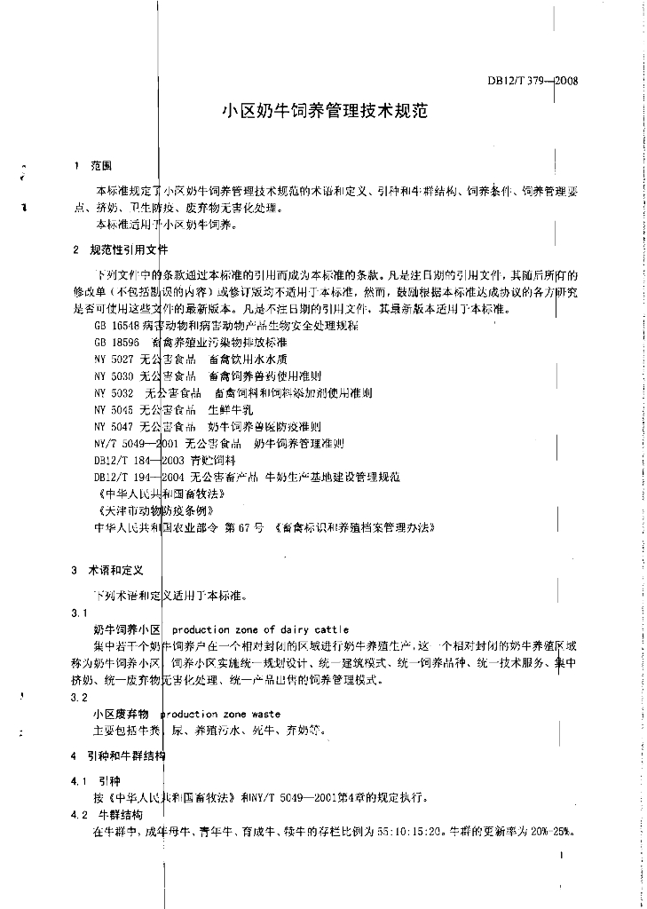 DB12/T 379-2008 小区奶牛饲养管理技术规范