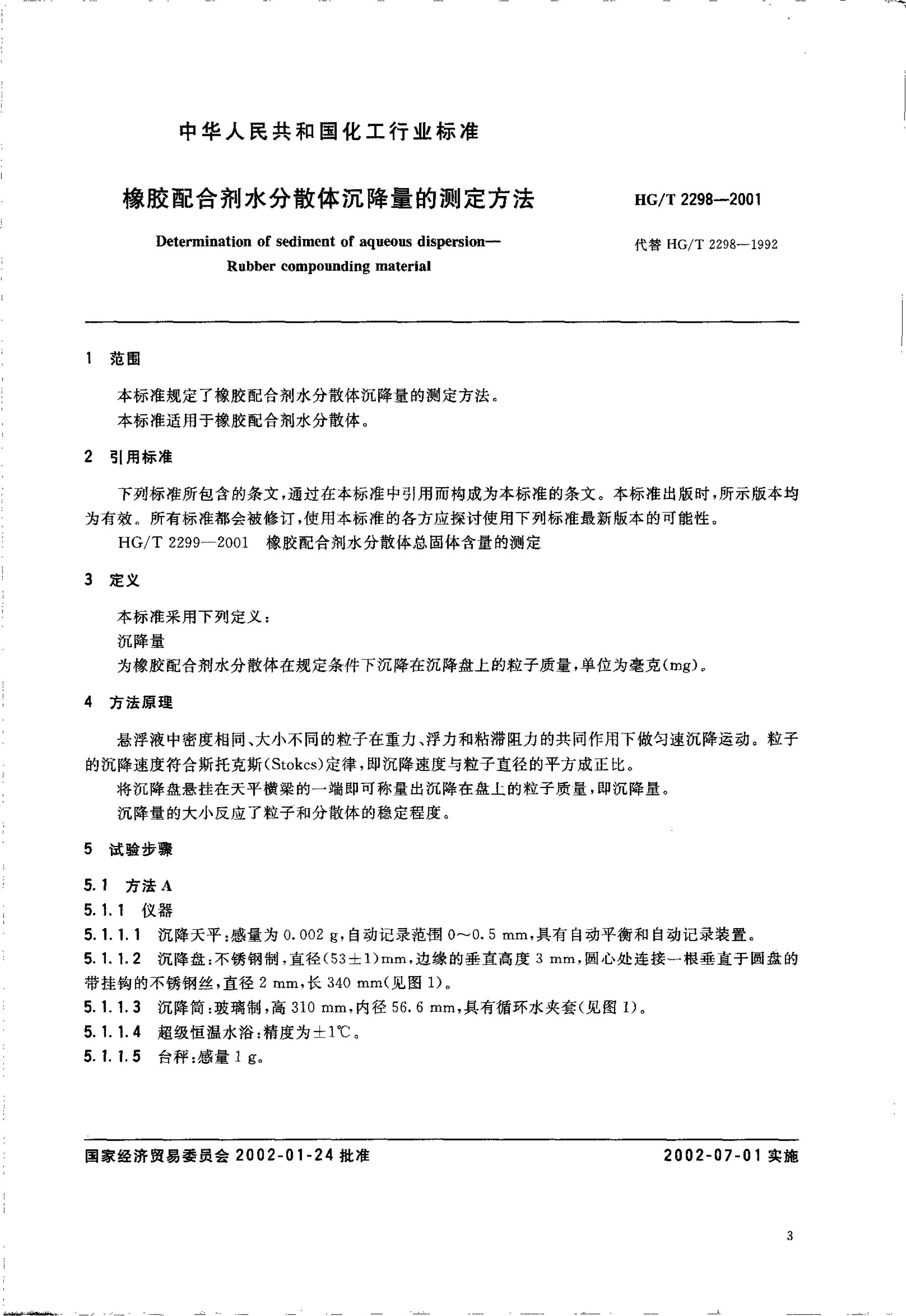 HG 2298-1992 橡胶配合剂水分散体沉降量的测定