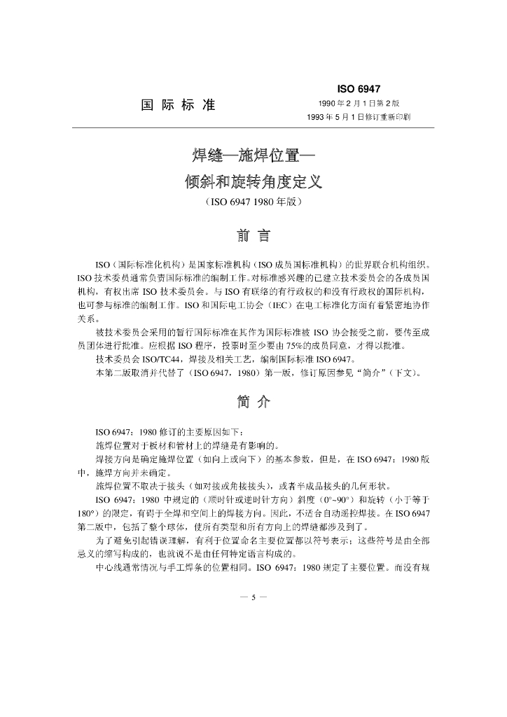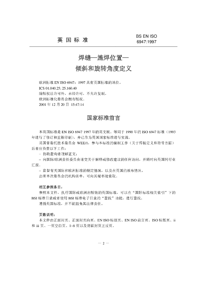 BS EN ISO 6947-1997 中文版 焊缝-施焊位置-倾斜和旋转角度定义