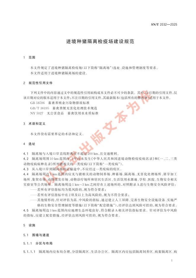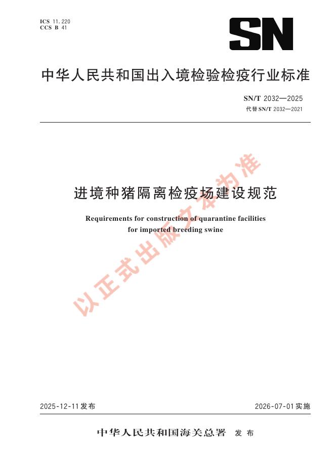 SN/T 2032-2025 进境种猪隔离检疫场建设规范