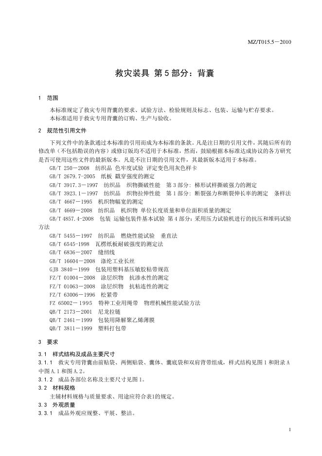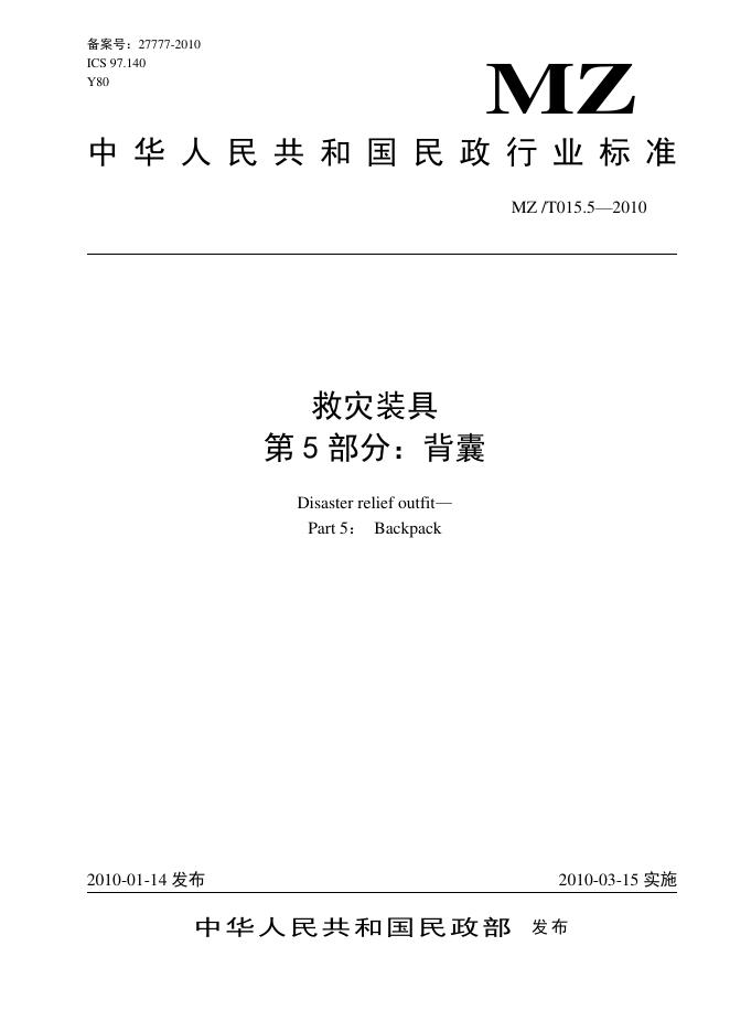 MZ/T 015.5-2010 救灾装具 第5部分:背囊