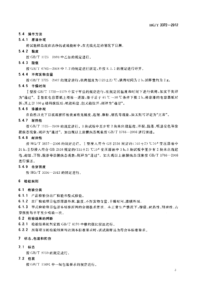 HG/T 3372-2012 代替 HG/T 3372-2003 醇酸烘干绝缘漆