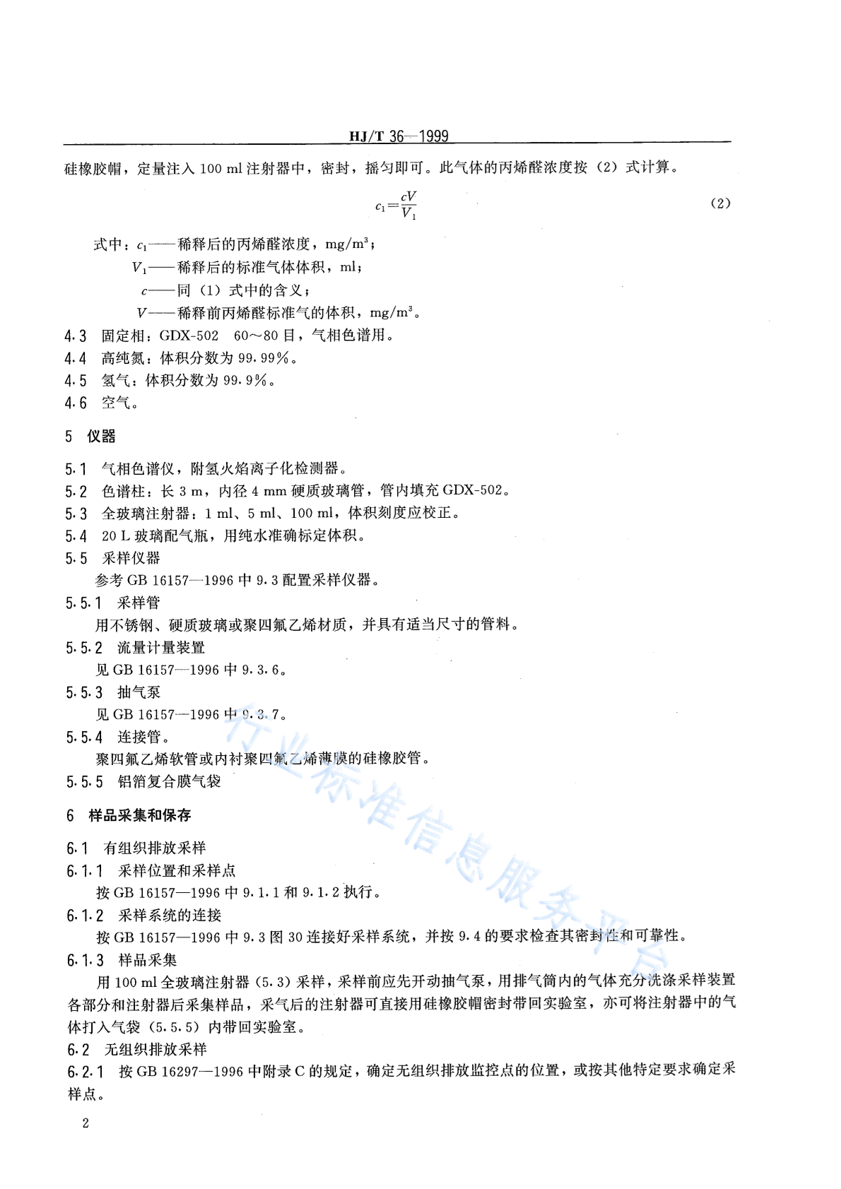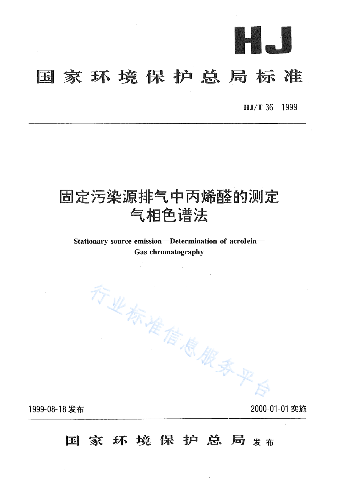 HJ/T 36-1999 固定污染源排气中丙烯醛的测定 气相色谱法