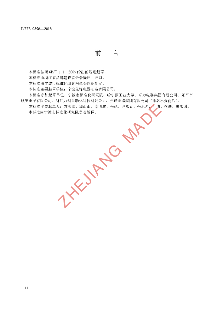 宁波先锋电器制造有限公司、宁波市标准化研究院、哈尔滨工业大学、卓力电器集团有限公司、乐平市硕果电子有限公司、浙江力创自动化科技有限公司、先锋电器集团有限公司