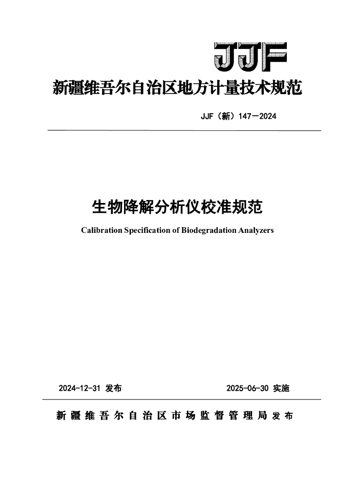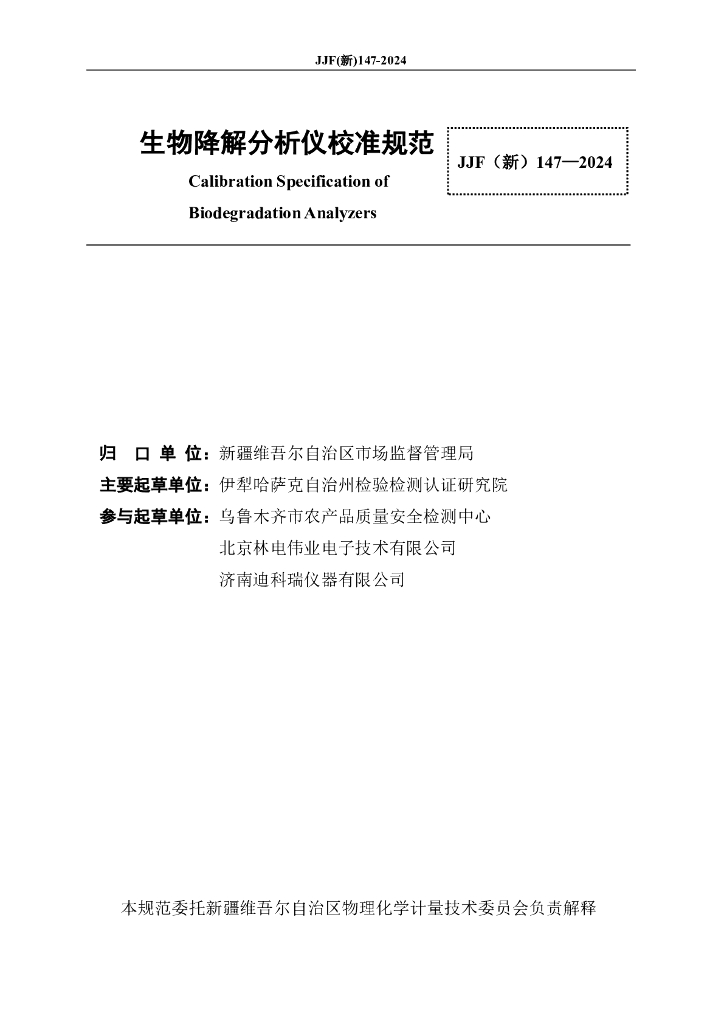 JJF(新)147-2024 生物降解分析仪校准规范