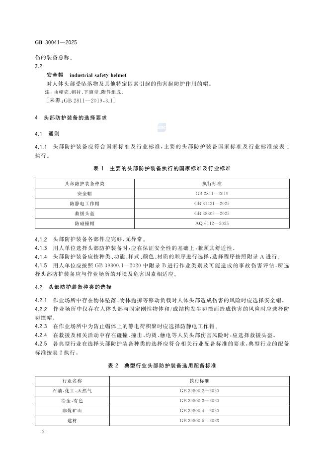 GB 30041-2025 头部防护装备的选择、使用和维护