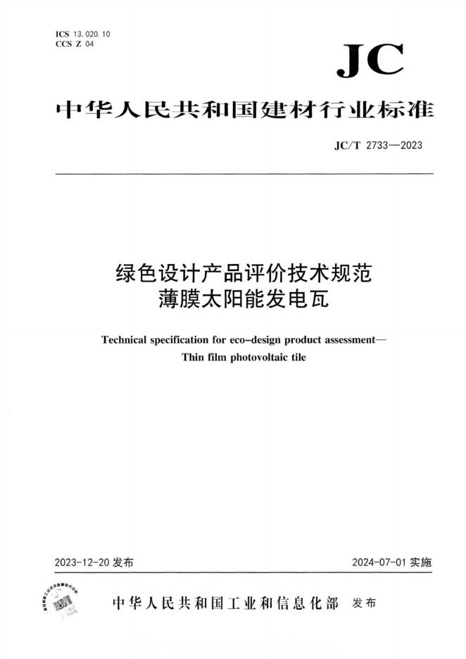JC/T 2733-2023 绿色设计产品评价技术规范薄膜太阳能发电瓦