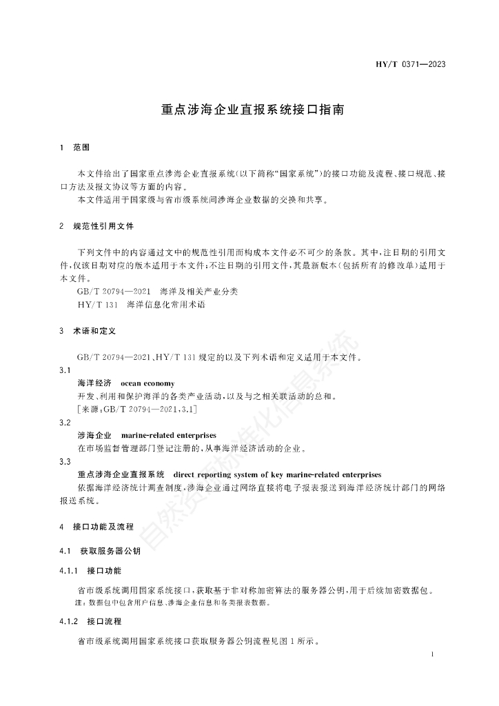 HY/T 0371-2023 重点涉海企业直报系统接口指南