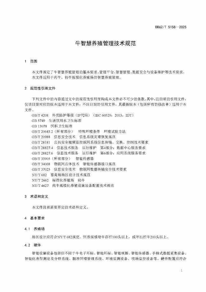 DB62/T 5158-2025 牛智慧养殖管理技术规范