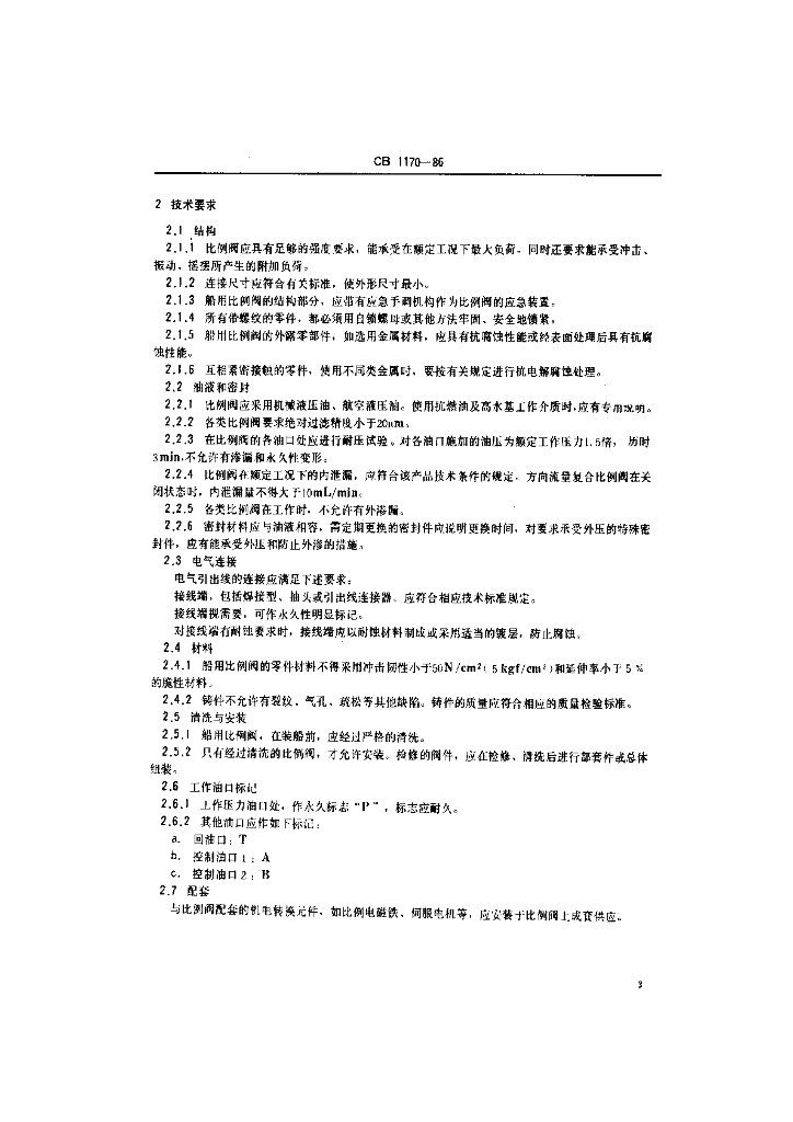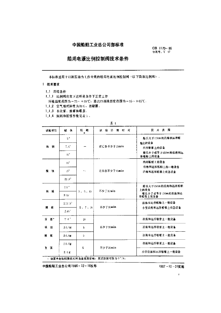 CB 1170-1986 船用电液比例控制阀技术条件