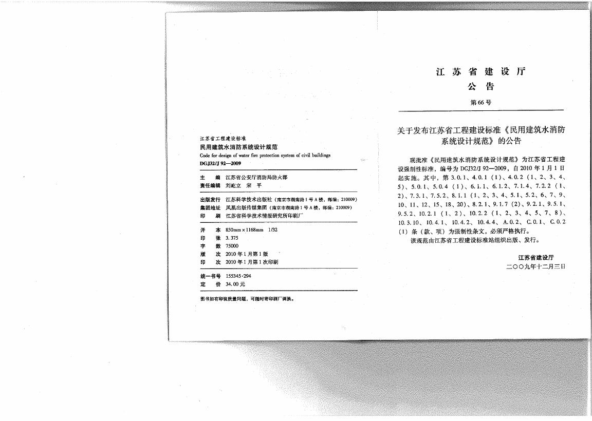 DGJ32/J 92-2009 民用建筑水消防系统设计规范