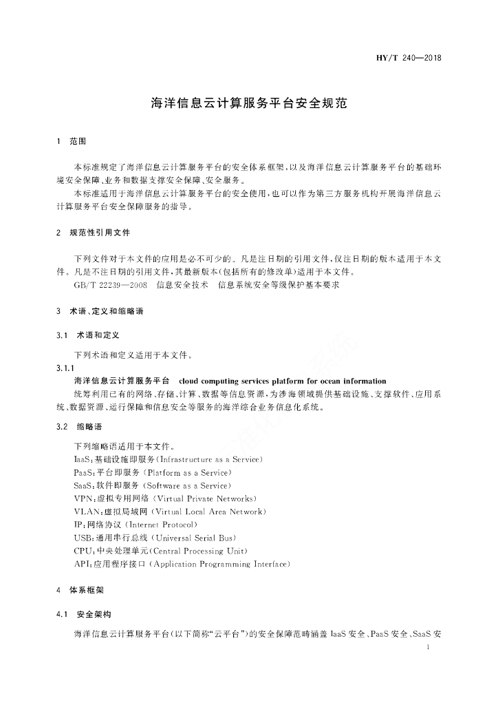 HY/T 240-2018 海洋信息云计算服务平台安全规范