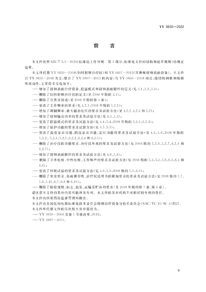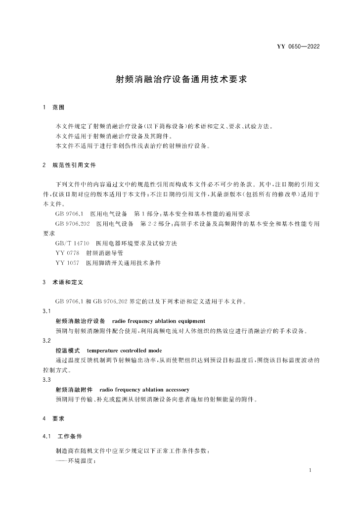 YY 0650-2022 射频消融治疗设备通用技术要求