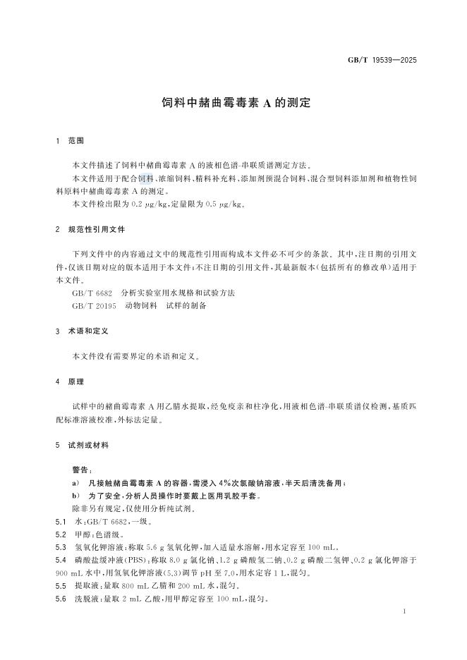 GB/T 19539-2025 饲料中赭曲霉毒素A的测定