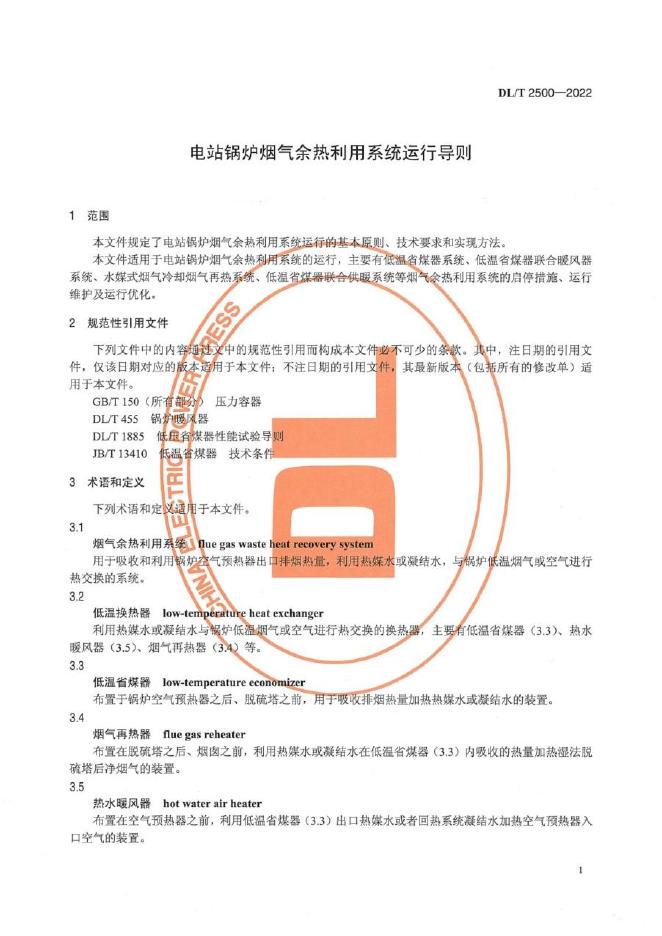DL/T 2500-2022 电站锅炉烟气余热利用系统运行导则