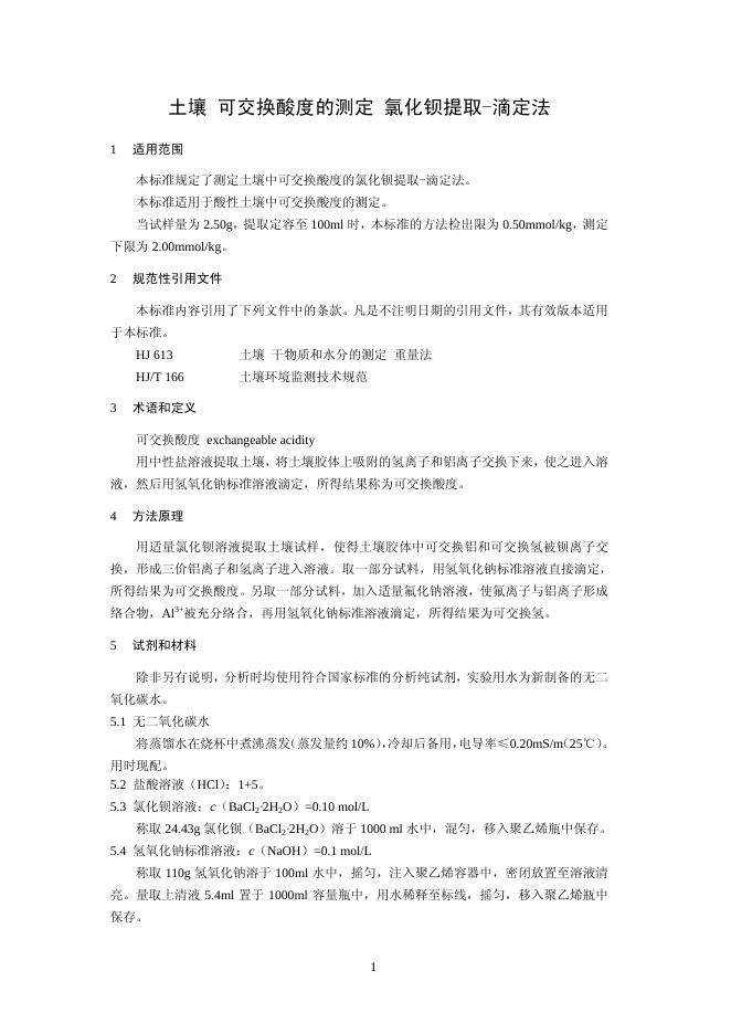 HJ 631-2011 土壤 可交换酸度的测定 氯化钡提取-滴定法