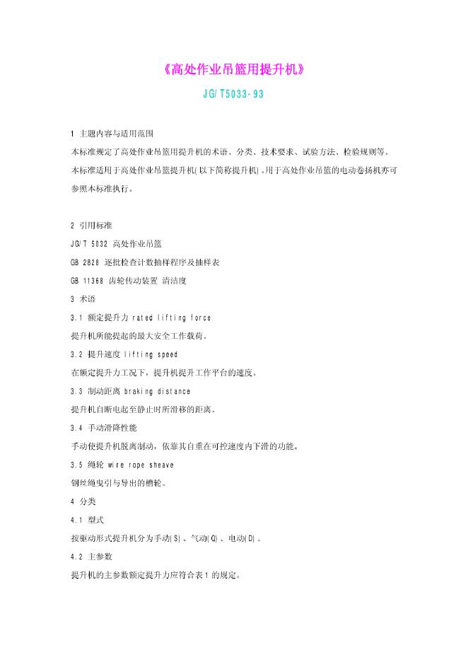 CJ/T 5033-1993 高处作业吊篮用提升机