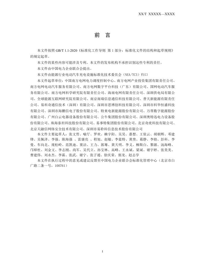 中国南方电网电力调度控制中心、南方电网产业投资集团有限责任公司、南方电网电动汽车服务有限公司、南方电网数字平台科技(广东)有限公司、国网电动汽车服务有限公司、南方电网科学研究院有限责任公司、海南电网有限责任公司、深圳供电局有限公司、全球能源互联网研究院有限公司、南京南瑞信息通信科技有限公司、普天新能源有限责任公司、易科奇通信技术(深圳)有限公司、深圳市思博创科技有限公司、深圳市科华恒盛科技有限公司、深圳市海鹏信电子股份有限公司、特来电新能源股份有限公司、万帮数字能源股份有限公司、广州白云电器设备股份有限公