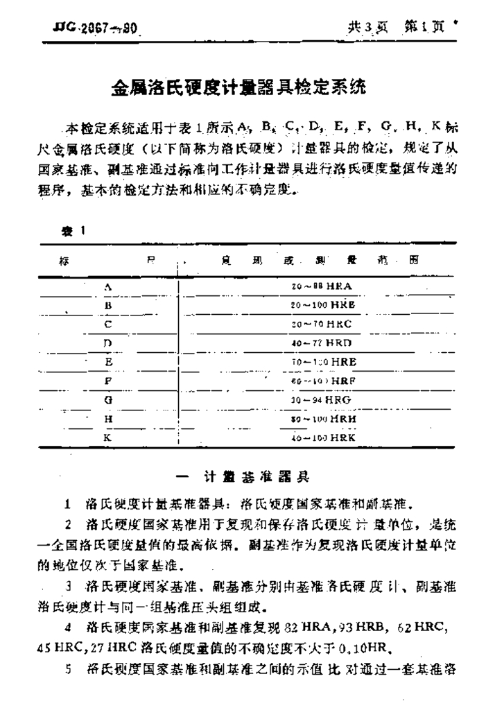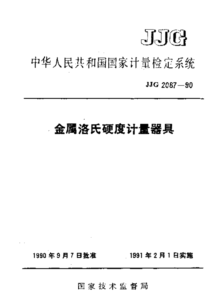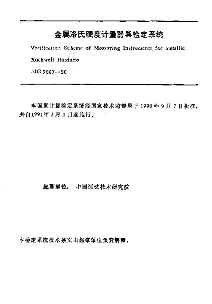 JJG 2067-1990 金属洛氏硬度计量器具检定系统