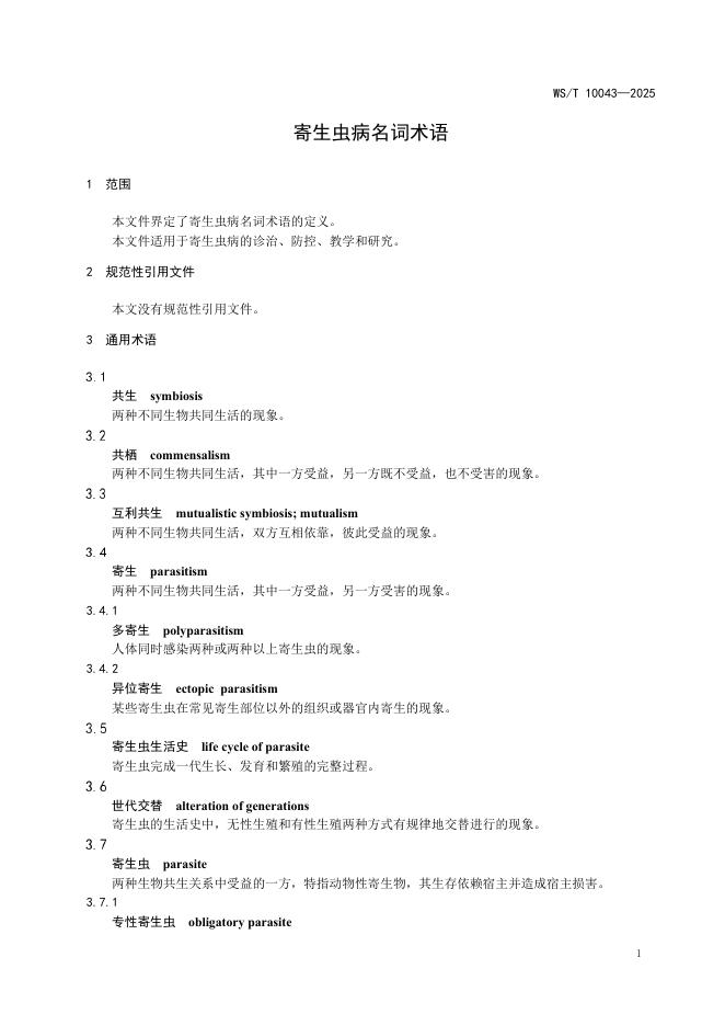 WS/T 10043-2025 寄生虫病名词术语