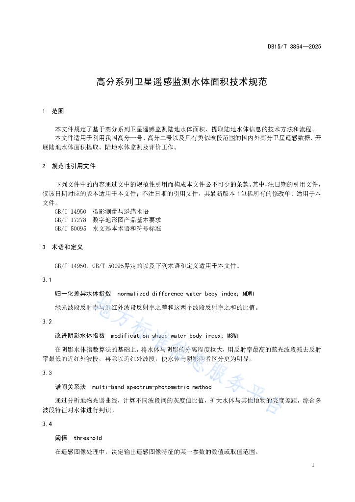 DB15/T 3864-2025 高分系列卫星遥感监测水体面积技术规范