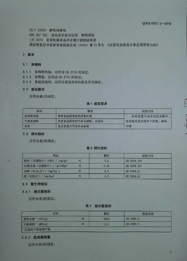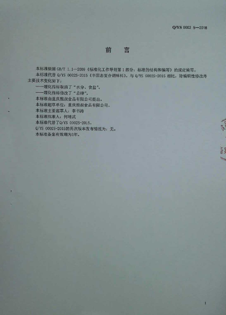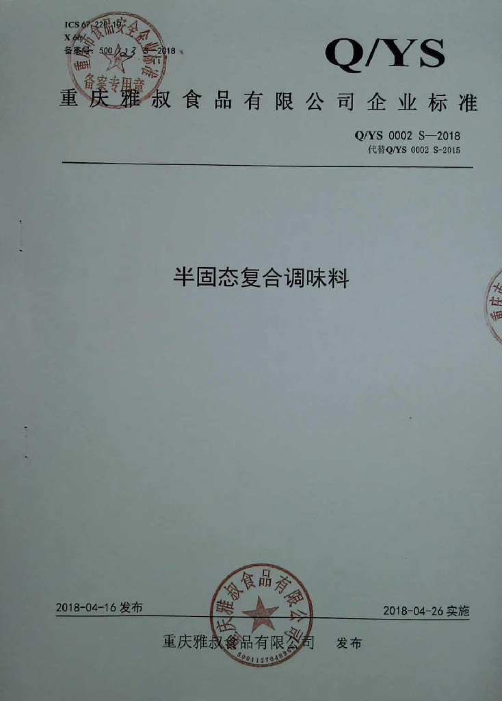 Q/YS 0002S-2018 半固态复合调味料