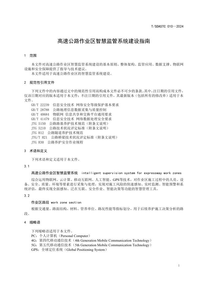 T/SDASTC 010-2024 高速公路作业区智慧监管系统建设指南
