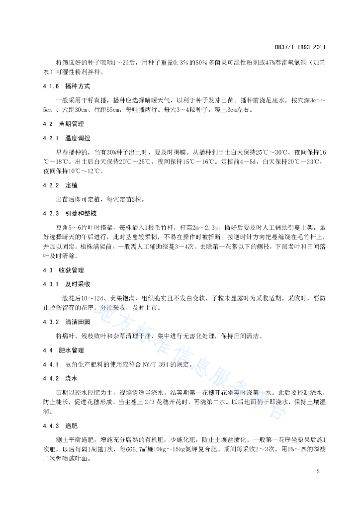 DB37/T 1893-2011 绿色食品 豆角种植技术规程