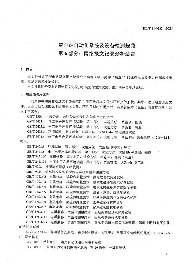 DL/T 2144.6-2021 变电站自动化系统及设备检测规范 第6部分:网络报文记录分析装置