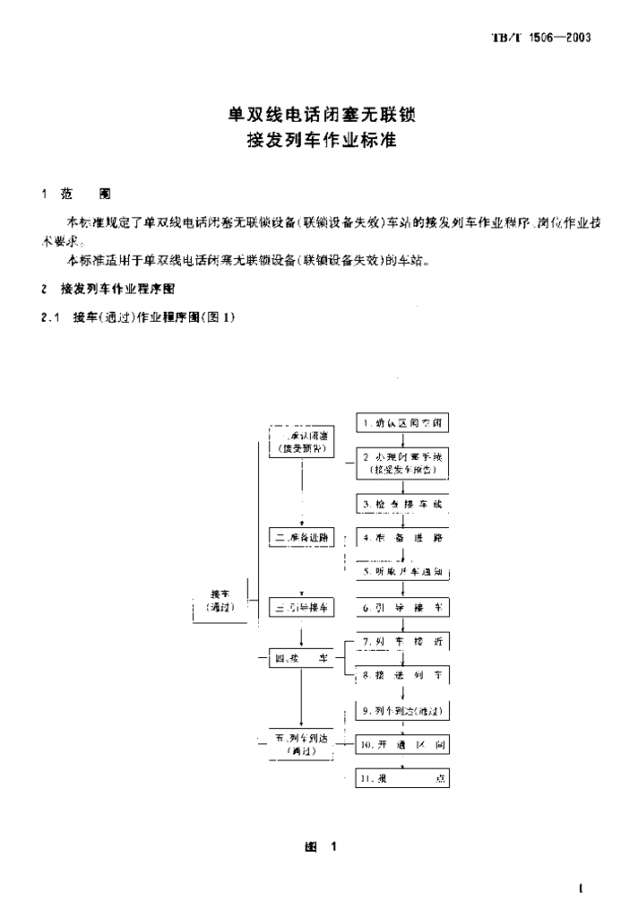 TB/T 1506-2003 单双线电话闭塞无联锁 接发列车作业标准
