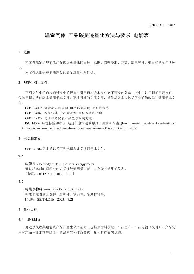 T/GDLC 036-2026 温室气体 产品碳足迹量化方法与要求 电能表