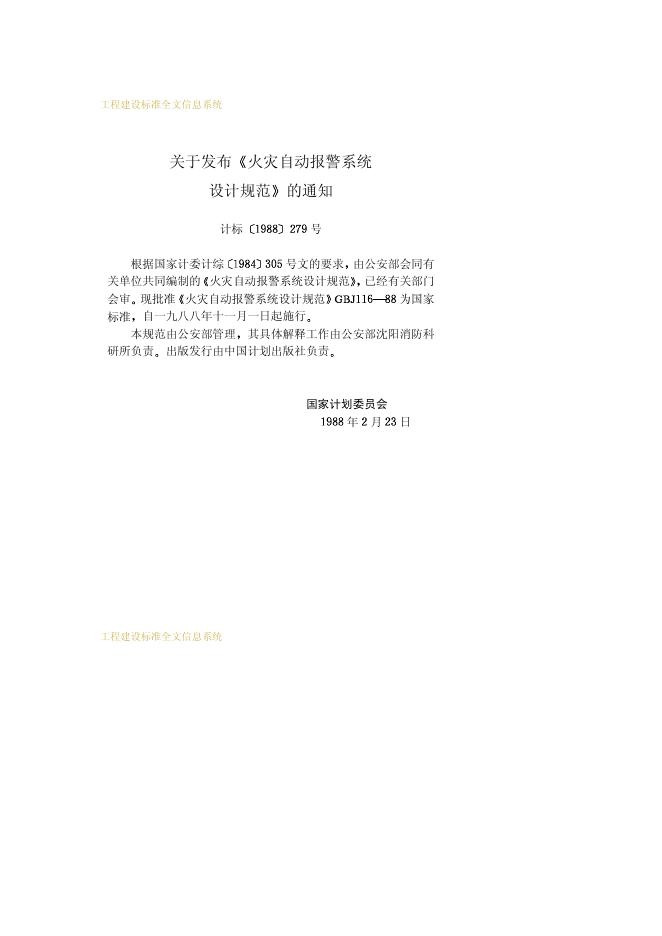 GBJ 116-1988 火灾自动报警系统设计规范