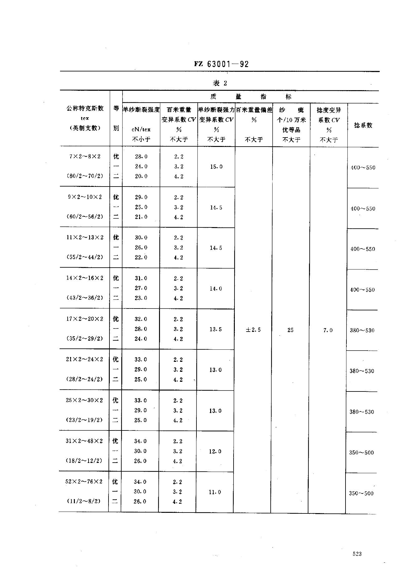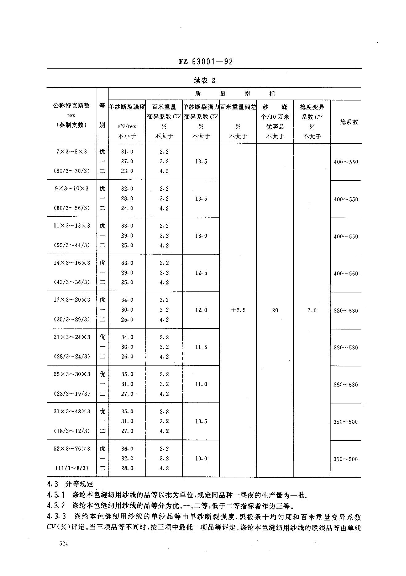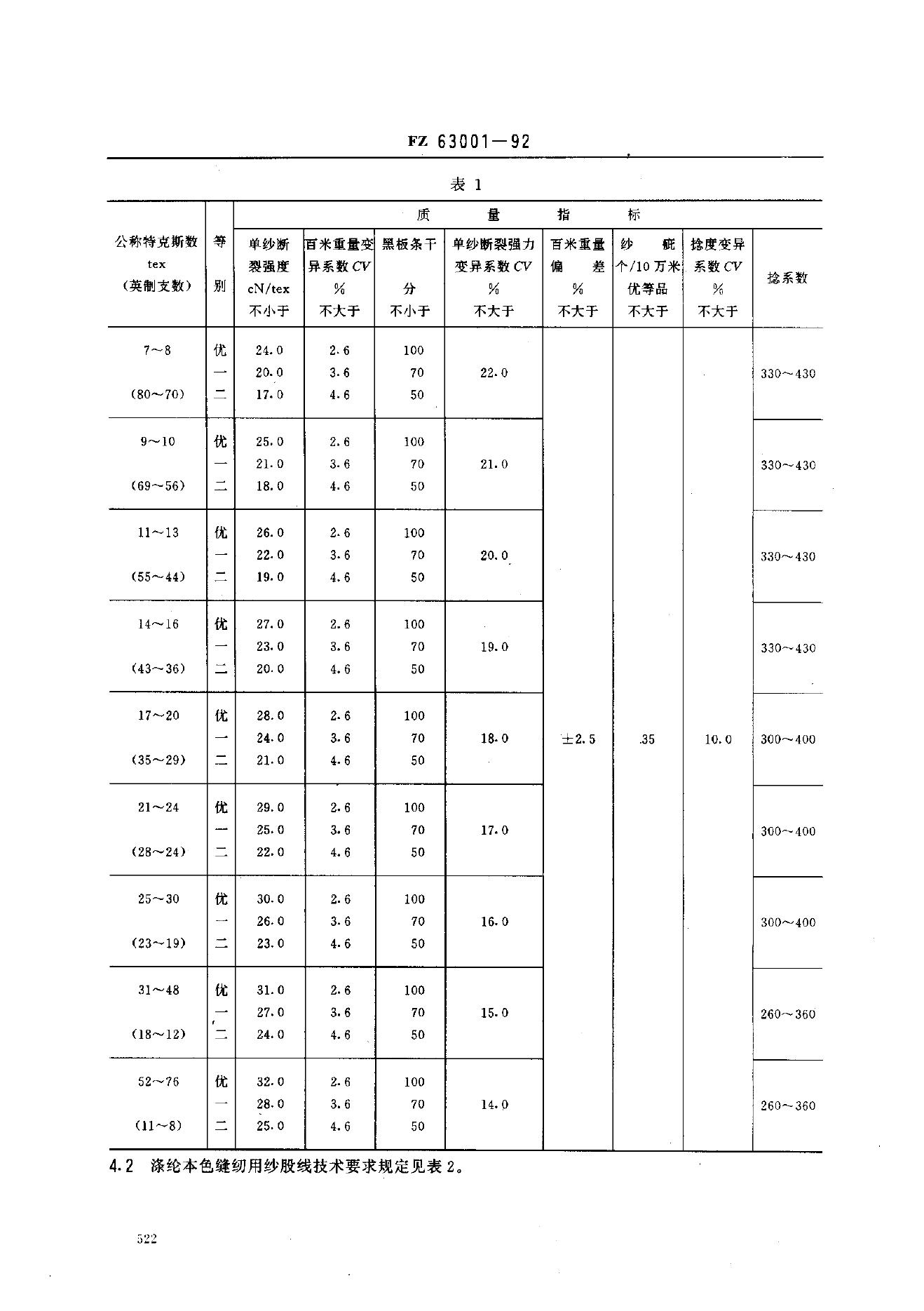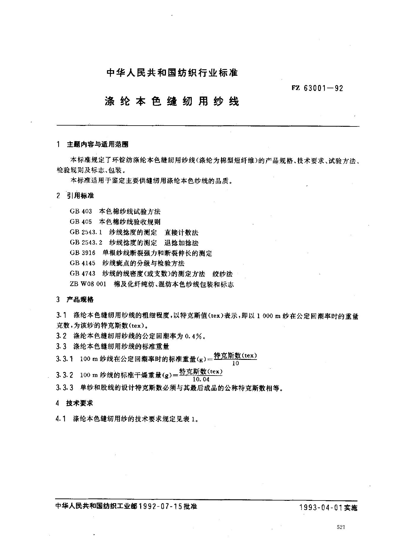 FZ/T 63001-1992 涤纶本色缝纫用纱线