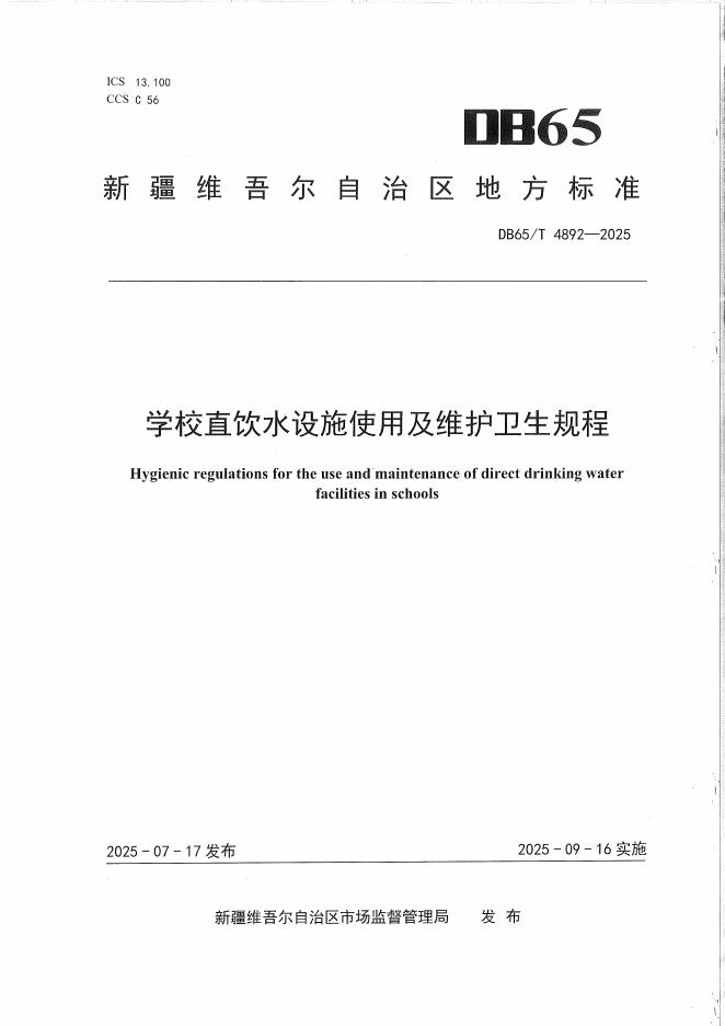 DB65/T 4892-2025 学校直饮水设施使用及维护卫生规程