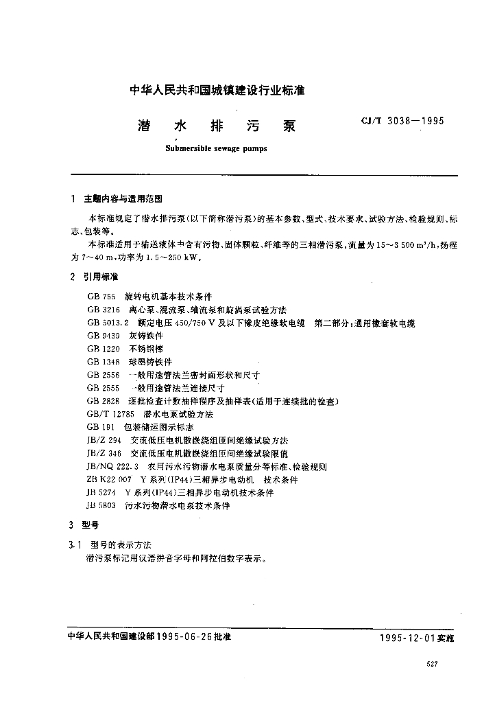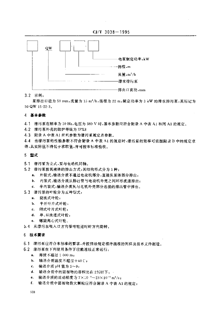 CJ/T 3038-1995 潜水排污泵