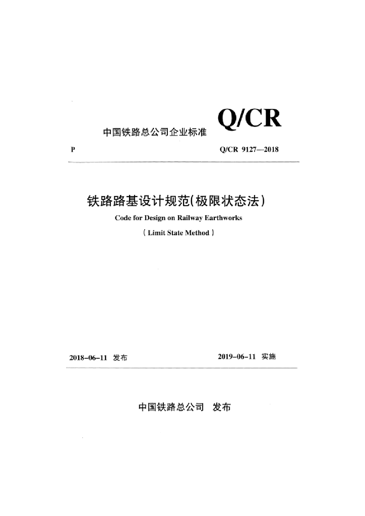 Q/CR 9127-2018 铁路路基设计规范(极限状态法)