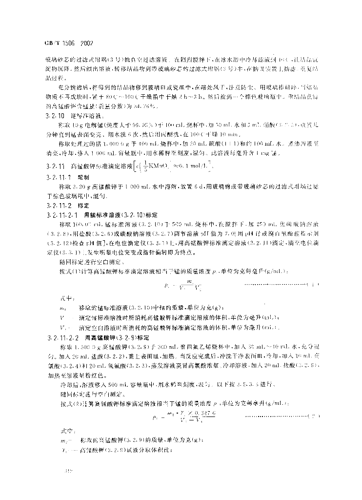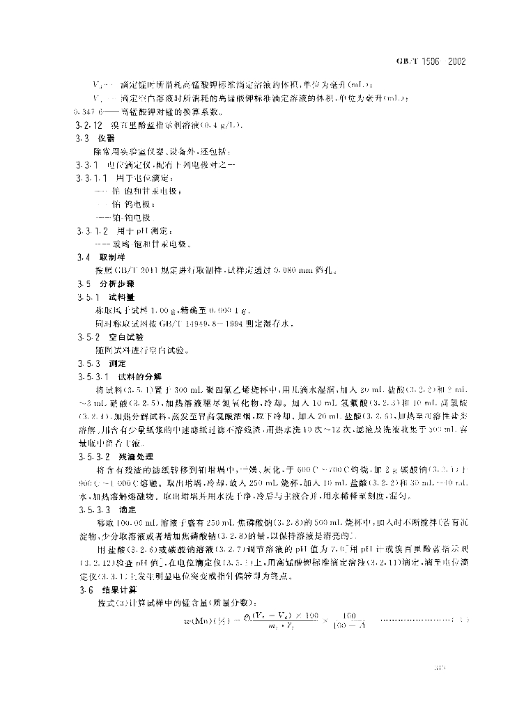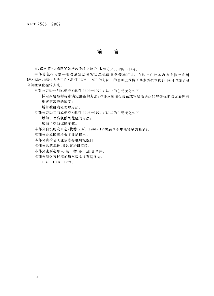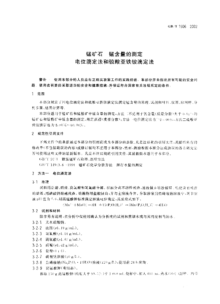 CB/T 1506-2002 锰矿石锰含量的测定电位滴定法和硫酸亚铁铵滴定法