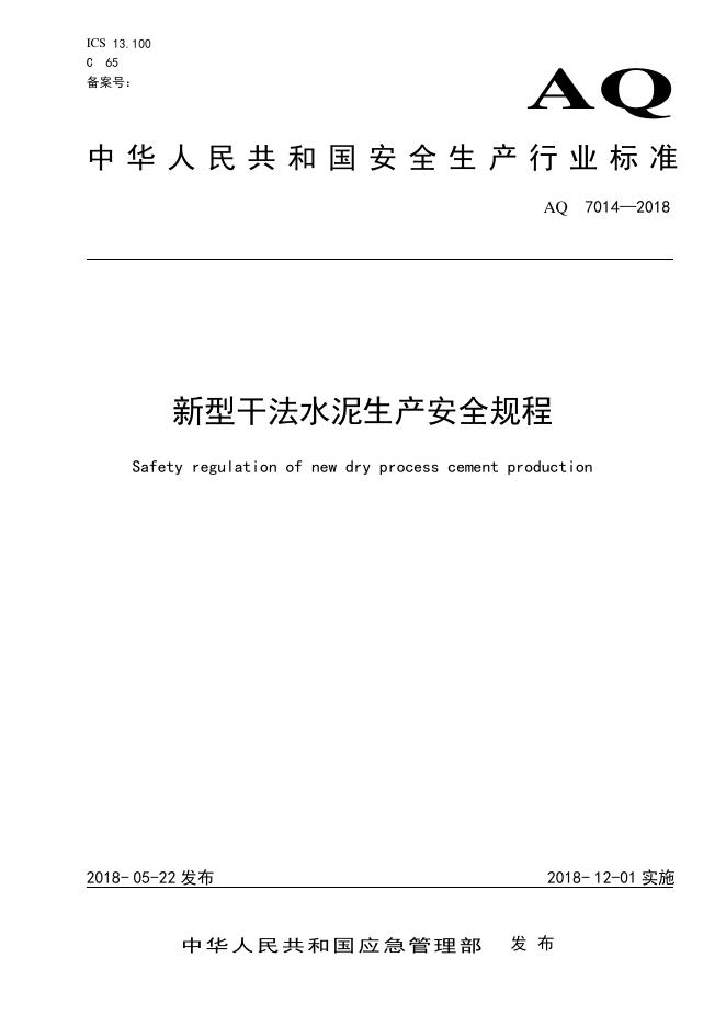 AQ 7014-2018 新型干法水泥生产安全规程