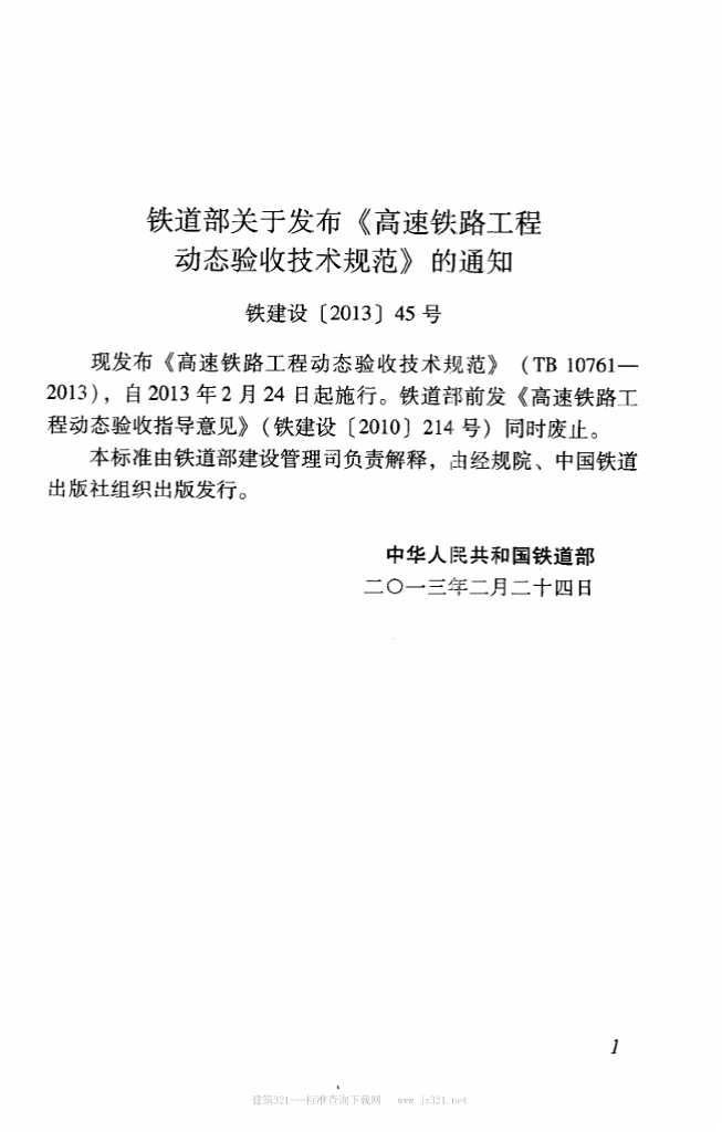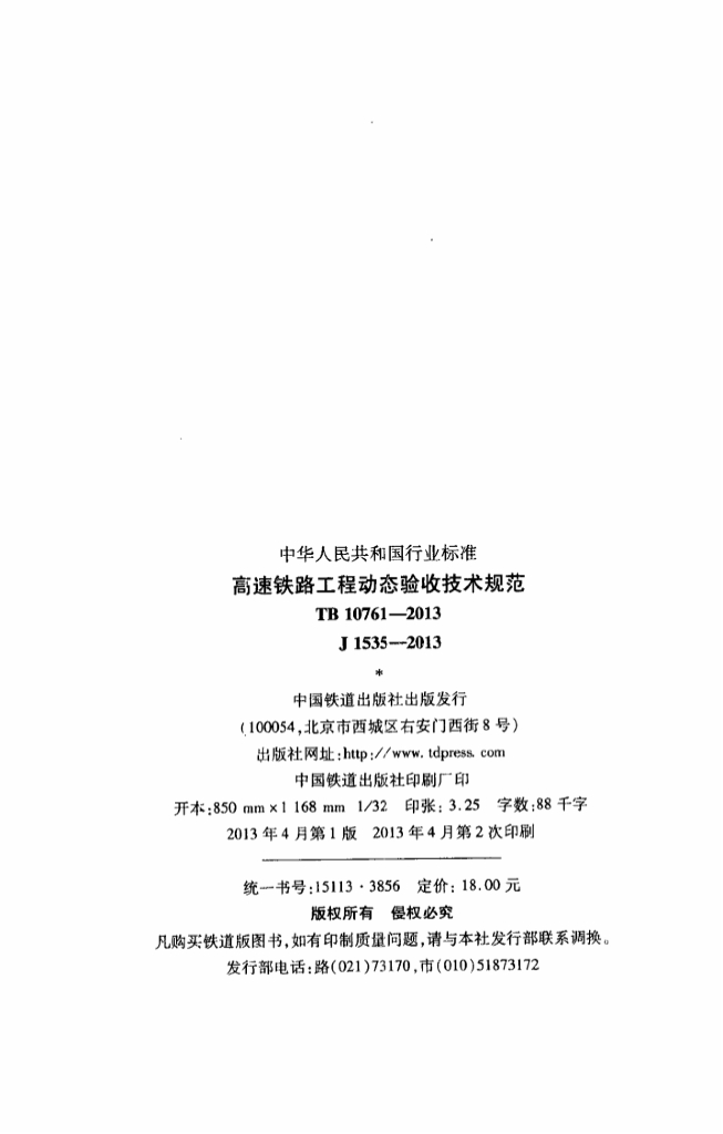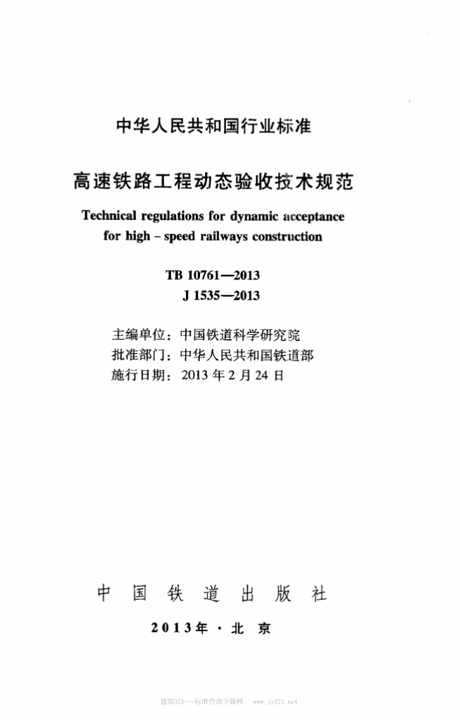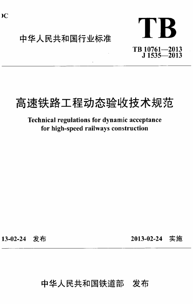 TB 10761-2013 高速铁路工程动态验收技术规范