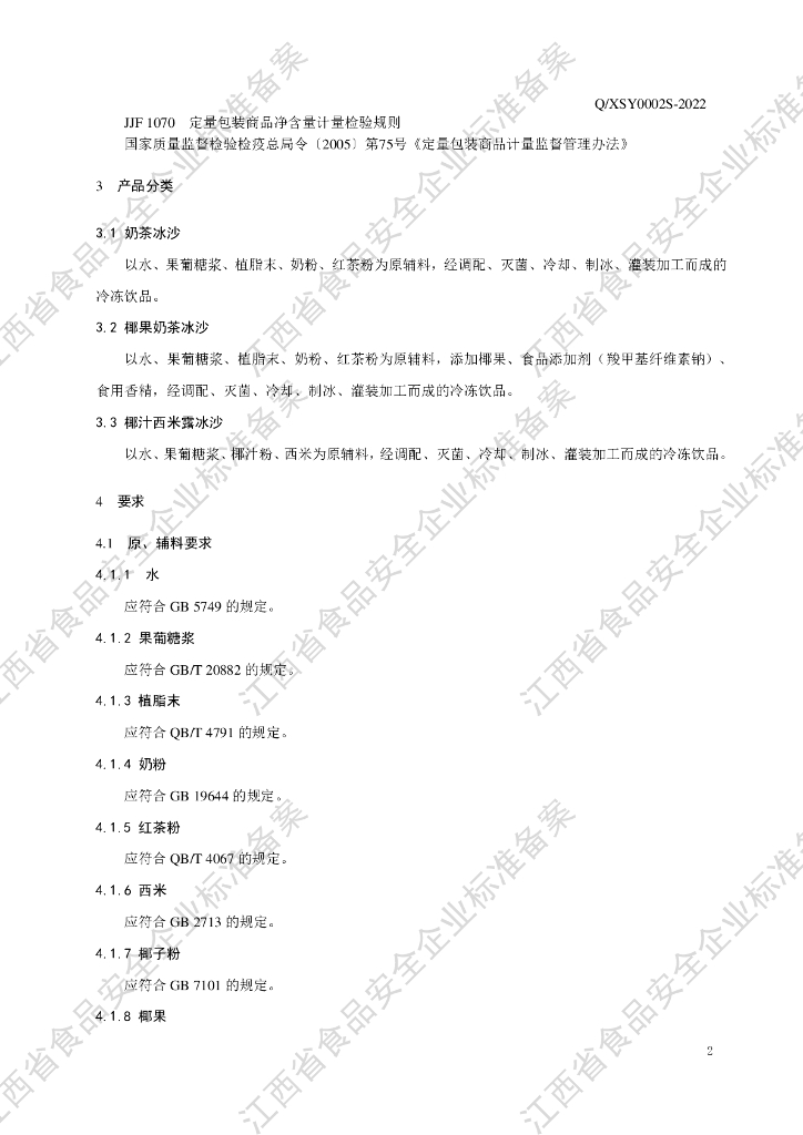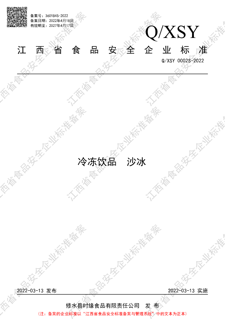 Q/XSY 0002S-2022 冷冻饮品 沙冰