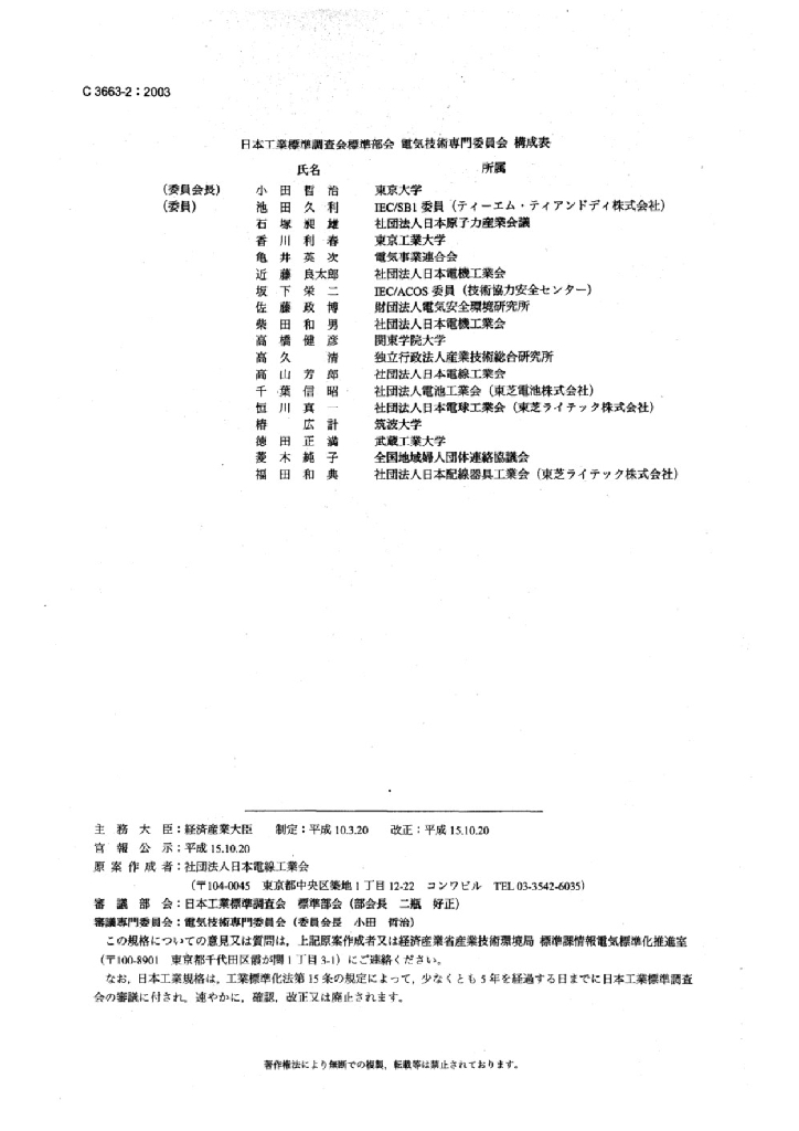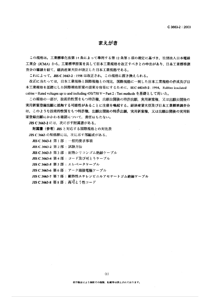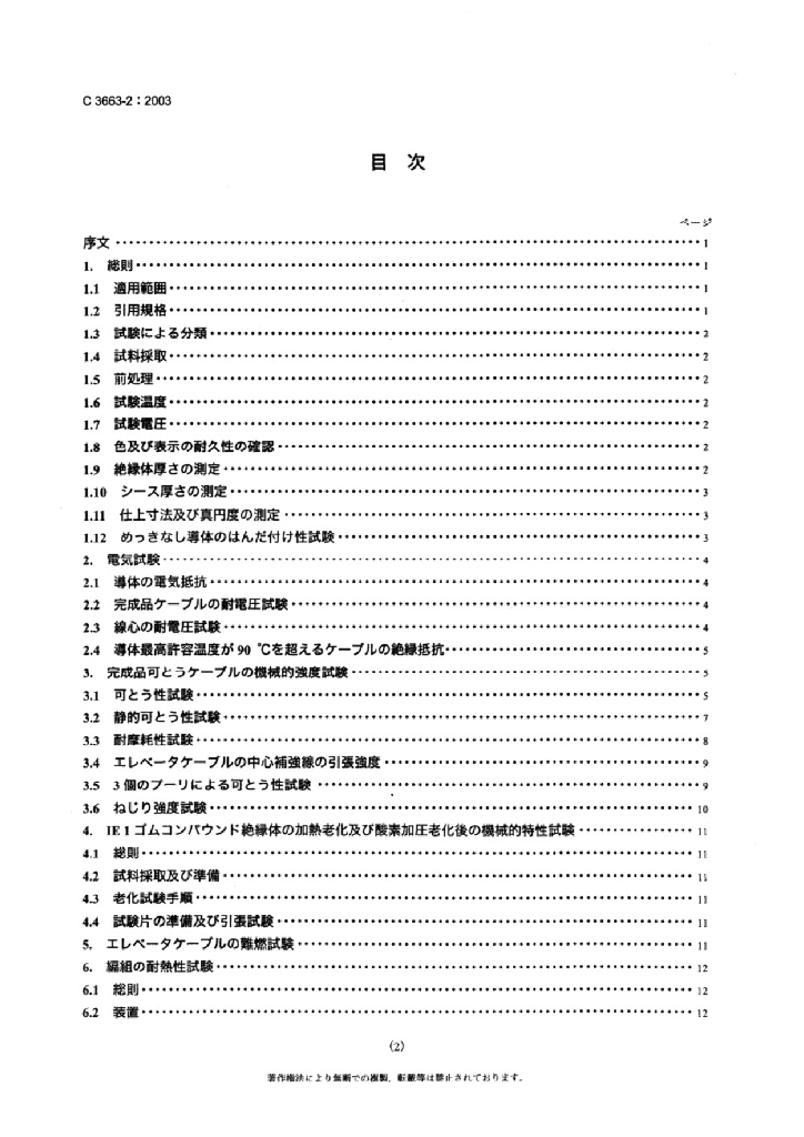 JIS C3663-2:2003 额定电压450/750V以下的橡胶绝缘电缆-第2部分 试验方法