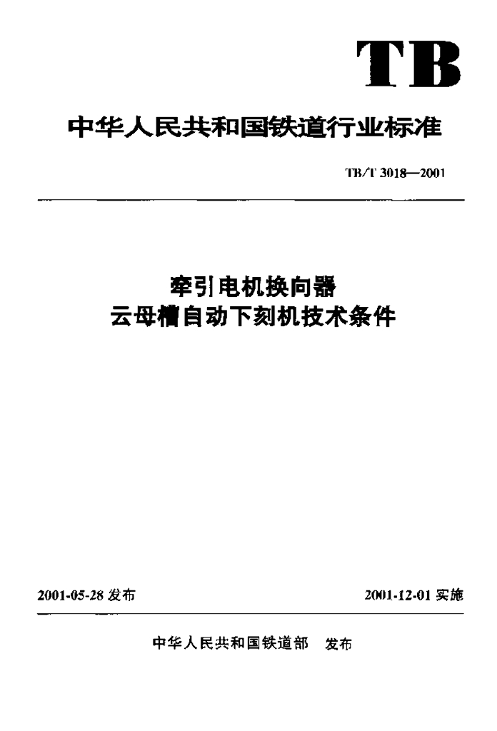 TB/T 3018-2001 牵引电机换向器云母槽自动下刻机技术条件