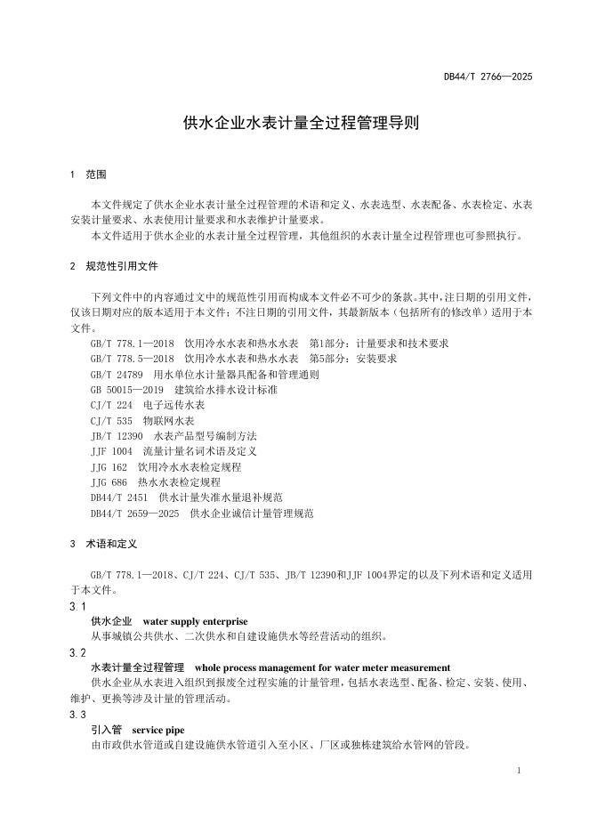 DB44/T 2766-2025 供水企业水表计量全过程管理导则