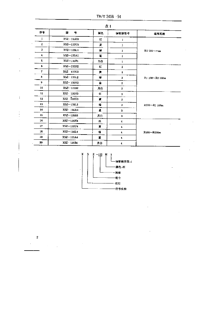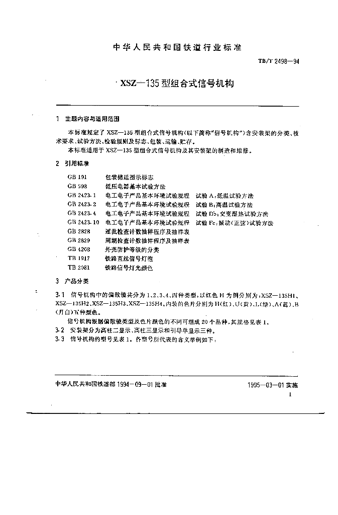 TB/T 2498-1994 XSZ-135型组合式信号机构