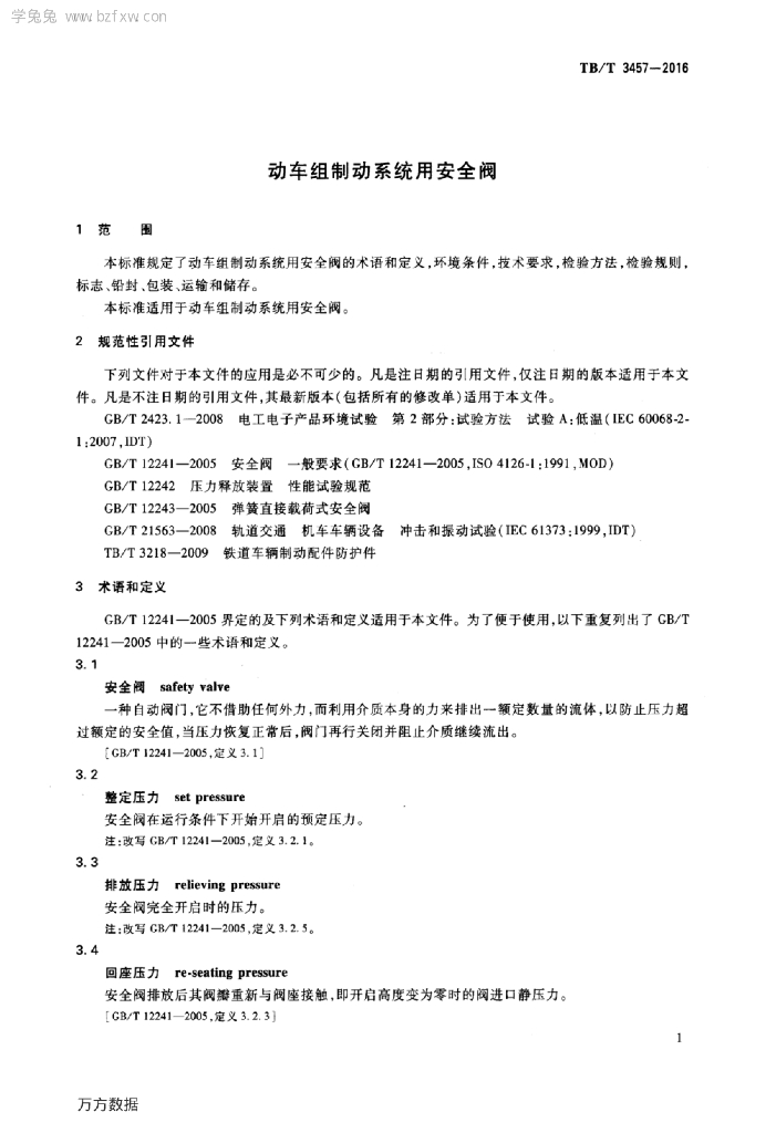 TB/T 3457-2016 动车组制动系统用安全阀